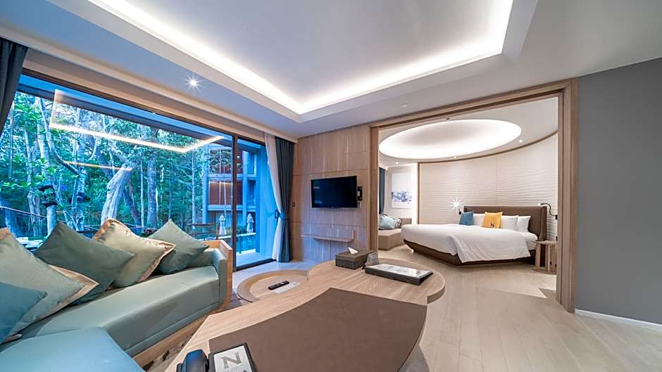 DELUXE POOL ACCESS is 323 square feet and includes a king-size bed 150-183 width plus balcony, extra beds on demand, and slippers and is Wheelchair-accessible.